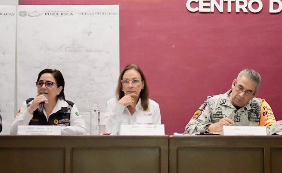 “Estamos trabajando en la coordinación de la contingencia que tenemos en el norte del estado de Veracruz, ha sido una reunión de dos horas de muchísimo trabajo donde se tocaron varios puntos, empieza la limpieza aquí en Poza Rica de las áreas afectadas; la segunda es la distribución, todavía tenemos muchos municipios hacia el norte que tenemos que hacerles llegar encereres donde dalta electricidad”, detalló.
