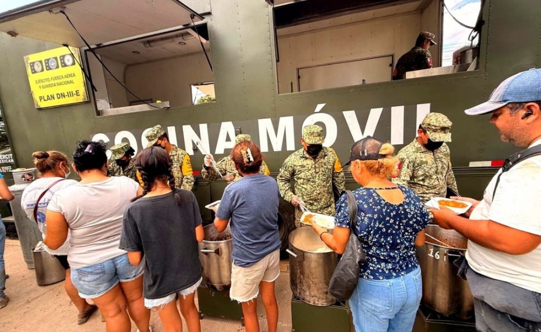 Se han repartido 20 mil 772 despensas, 75 mil litros de agua embotellada y 29 mil litros de agua purificada, además de 62 mil 300 raciones calientes.