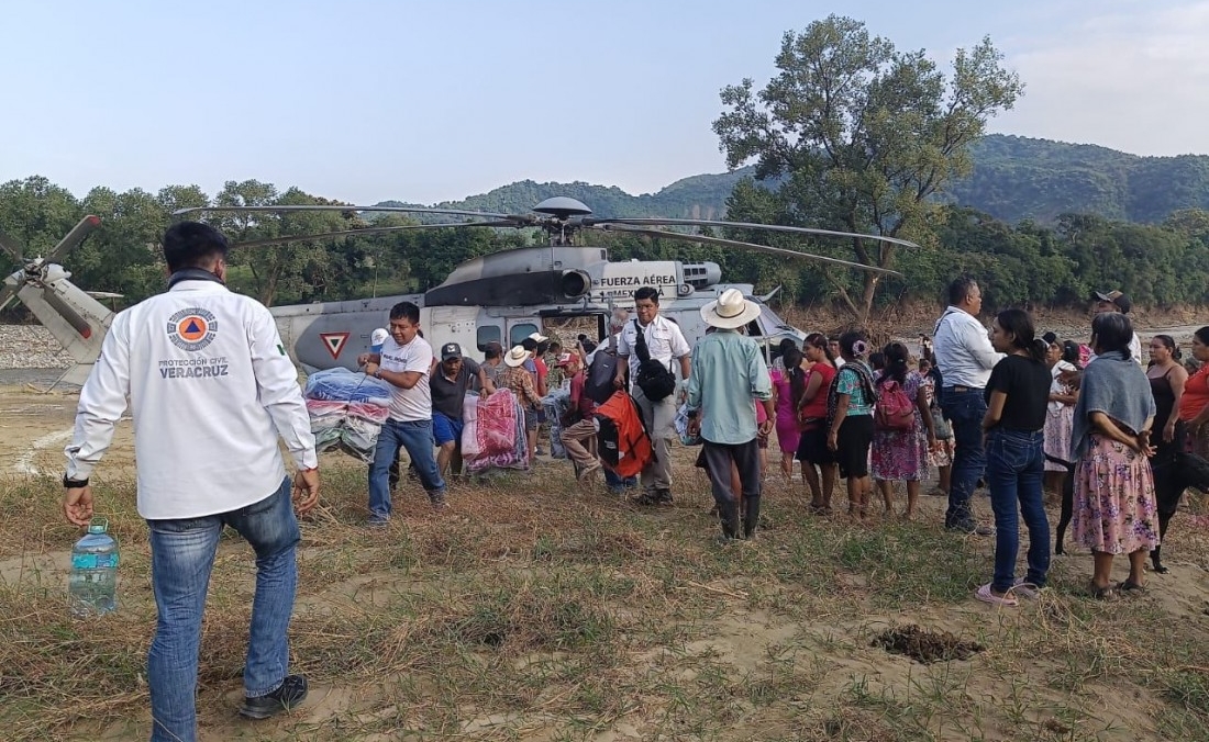 Asimismo, expresó su agradecimiento a la Secretaría de la Defensa Nacional, al Ejército Mexicano y a la Secretaría de Marina, por su participación activa en las labores de apoyo, especialmente a través del puente aéreo de 19 helicópteros que ha permitido trasladar víveres y ayuda humanitaria a las comunidades serranas.
