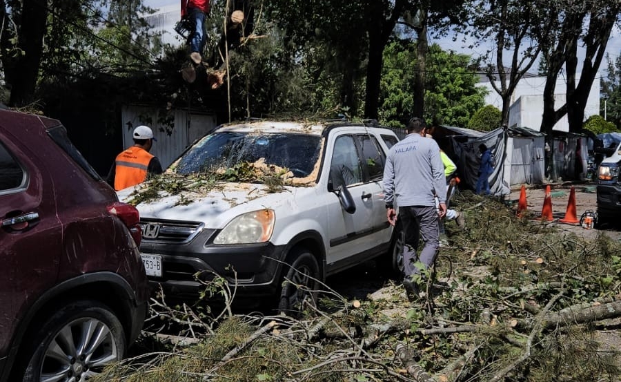Árbol cae sobre camioneta en Xalapa, no se reportan heridos