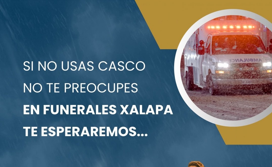 A través de sus redes sociales, la Funeraria Xalapa publicó a un hombre montado en una motocicleta con la leyenda "si no usas casco no te preocupes en Funerarias Xalapa te esperamos.