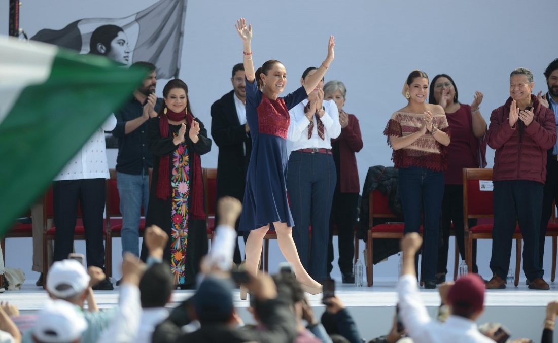 Junto a integrantes del Gabinete legal y ampliado del Gobierno de México, legisladoras y legisladores veracruzanos, así como dirigencias nacionales de Morena, del Partido del Trabajo y del Partido Verde Ecologista de México, la Gobernadora formó parte de las más de 600 mil personas que se congregaron para celebrar este gran momento de unidad y fuerza nacional.