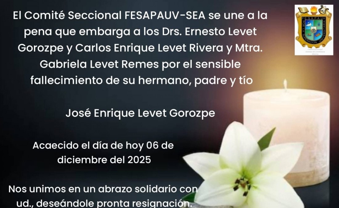 falleció José Enrique Levet Gorozpe, conocido como “El Papo” Levet, secretario general del Sindicato del Personal Académico de la Universidad Veracruzana (FESAPAUV), según confirmaron académicos agremiados.