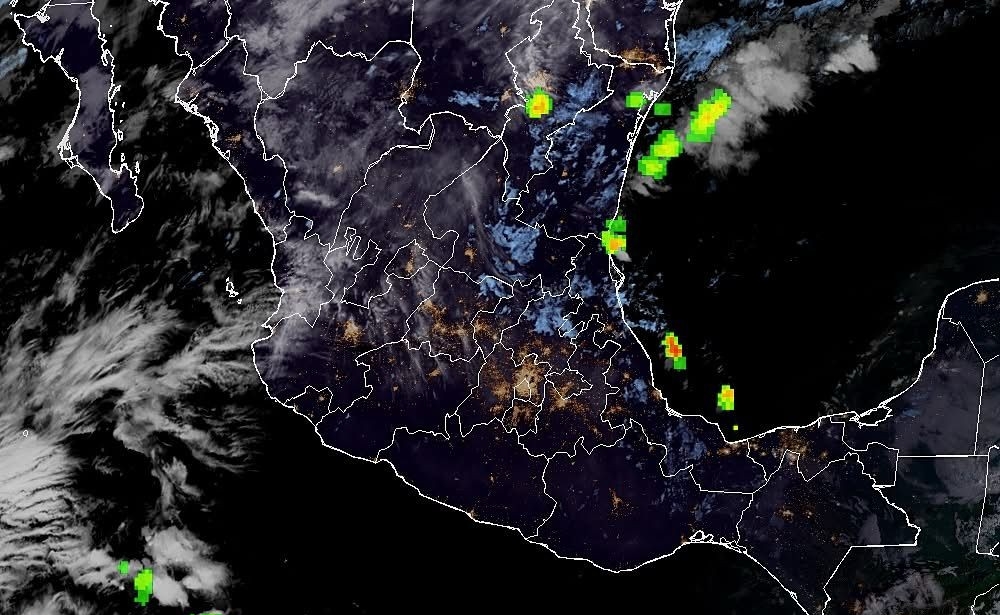 En las próximas 24 horas incrementa notablemente el potencial para lluvias y tormentas en el noreste, oriente y sureste del territorio mexicano, por lo que se esperan lluvias fuertes a muy fuertes en el centro de Baja California, sur de Chihuahua, norte de Durango, centro y sur de Nuevo León, centro, sur y oriente de Tamaulipas, oriente de San Luis Potosí, norte de Hidalgo, norte, oriente y sureste de Puebla, norte, centro y sur de Veracruz (para más detalle de las lluvias por regiones consultar la #AlertaGris), norte, noreste y oriente de Oaxaca, occidente y centro de Tabasco, norte, noreste y oriente de Chiapas, centro, sur y suroeste de Campeche, sur de Yucatán y centro y sur de Quintana Roo. En el resto del territorio mexicano es posible que se presenten lluvias ligeras a moderadas de carácter aislado. Aún se mantiene latente la posibilidad de caída de aguanieve o nieve en sierras de Baja California, el norte de Chihuahua y norte de Durango, asimismo en las partes altas del Pico de Orizaba y Cofre de Perote, de esta noche a mañana.