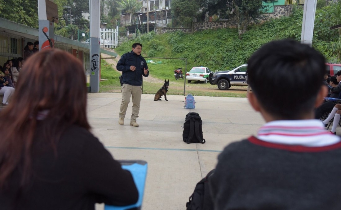 Además, se contó con la colaboración de un elemento canino y un oficial adscrito a la Brigada Animal de la Policía, quien expuso el manejo, control básico y avanzado del binomio, así como las habilidades de obediencia, socialización y trabajo en entornos escolares.
