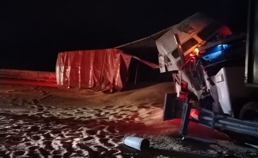 El siniestro ocurrió alrededor de las 5 horas, a la altura del kilómetro 51, cuando un tráiler con caja seca impactó por alcance a una unidad tipo tolva cargada con granos.