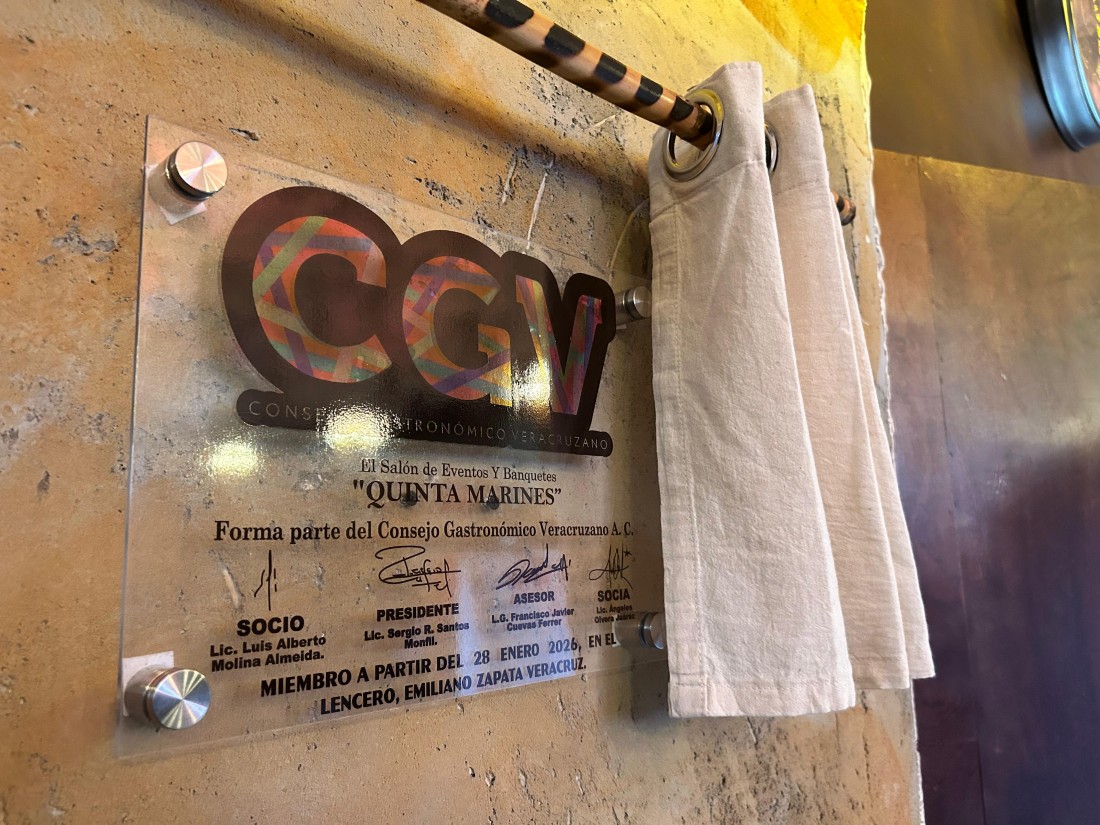 Javier LaertesEl Consejo Gastronómico Veracruzano (CGV), continúa creciendo y este día llevó a cabó la afiliación del Salón de Eventos Quinta Marines, ubicado en El Encero, municipio de Emiliano Zapata propiedad del empresario Giovanni Arcos Marines.