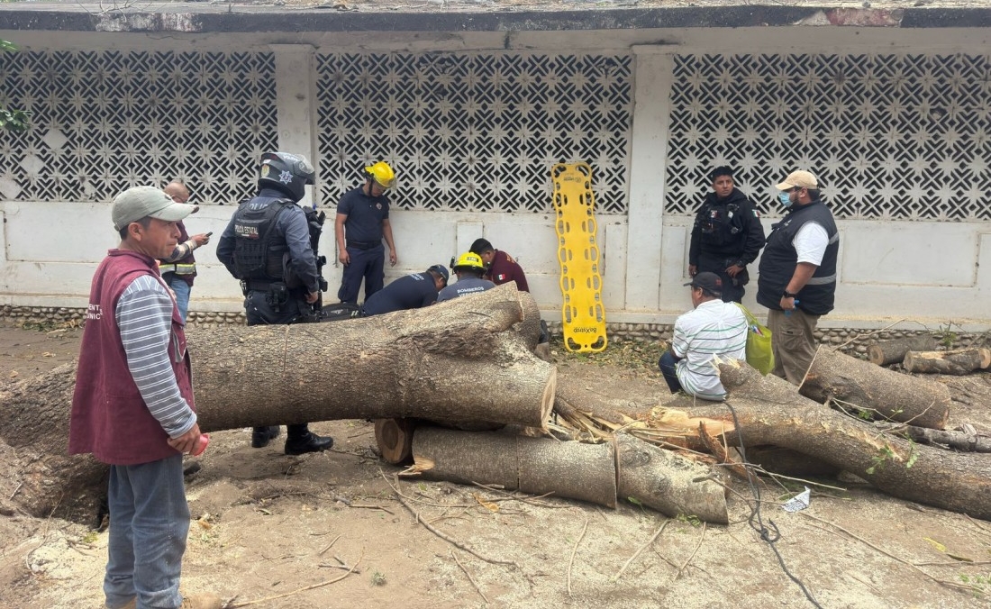 Cae tronco y lesiona a trabajador del Ayuntamiento de Veracruz