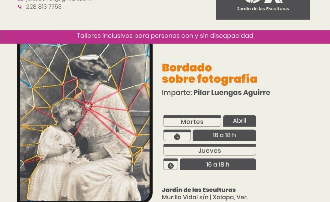 El taller Bordado sobre fotografía se realizará todos los jueves, en horario de 16:00 a 18:00 horas. Esta actividad propone intervenir imágenes significativas mediante bordado a mano, con el fin de resignificar recuerdos.