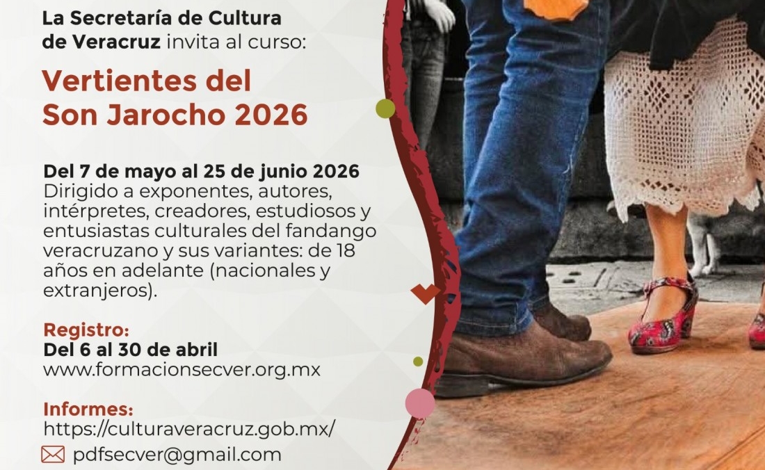 En tanto, Vertientes del Son Jarocho, es un curso gratuito impartido por Rafael Figueroa Hernández, aborda el desarrollo histórico del género musical, así como sus distintas variantes regionales y estilísticas, destacando su vigencia en la vida cultural veracruzana. Se realizará del 07 de mayo al 25 de junio.