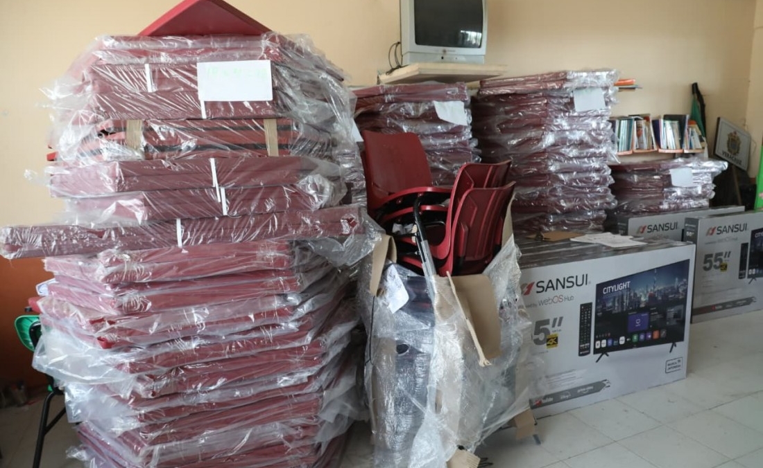 La Secretaría de Educación de Veracruz (SEV), distribuyó más de 2 mil 114 bienes, entre sillas, mesas, pupitres, butacas, escritorios, pantallas de 55 pulgadas, equipo de sonido, proyectores, computadoras e impresoras.