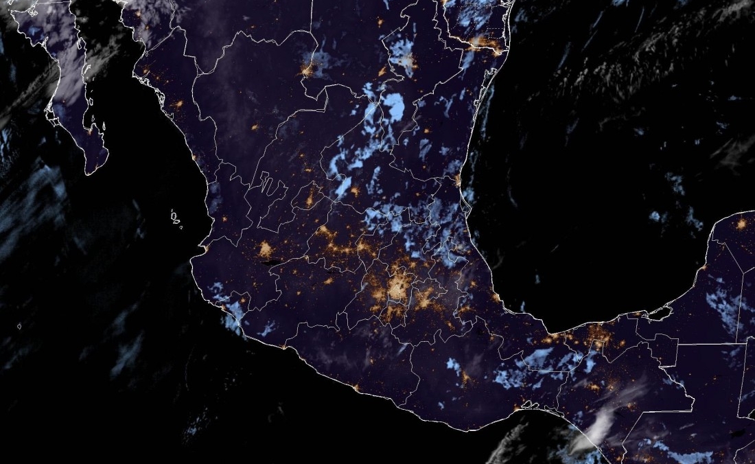 Esta mañana en la imagen de satélite se observa nubosidad media en el norte de la Península de Baja California y gran parte de Sonora, mientras que en el resto del territorio nacional la nubosidad es de poco espesor y aislada.