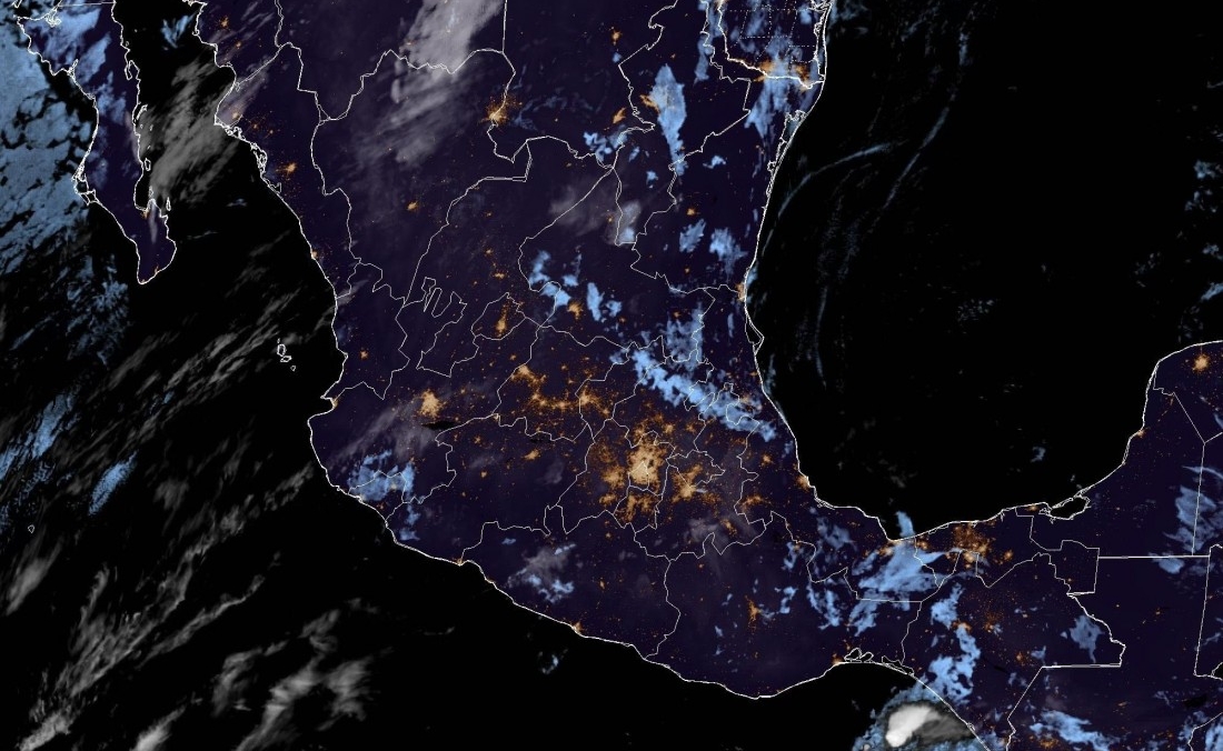 Esta mañana la imagen de satélite muestra poca nubosidad en el territorio nacional, con sectores de niebla en el extremo occidental de la Península de Baja California, bandas de nubes medias y altas en Chihuahua y nubes bajas de carácter disperso y aislado en el noreste, oriente y sureste del país.