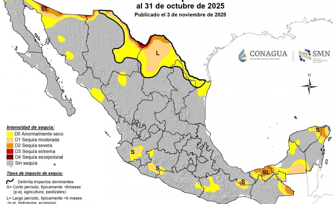 La meteoróloga de la Comisión Nacional del Agua (Conagua), Jessica Iveth Luna, informó que al 31 de octubre, Veracruz registra tres municipios con sequía severa y cuatro bajo índice anormalmente seco y cuatro bajo índice anormalmente seco