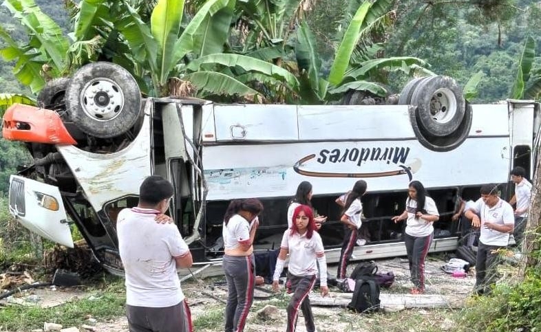 Una estudiante muerta, así como varios más heridos deja como saldo la volcadura de un autobús que trasladaba a estudiantes del TEBAEV de Pinoltepec.