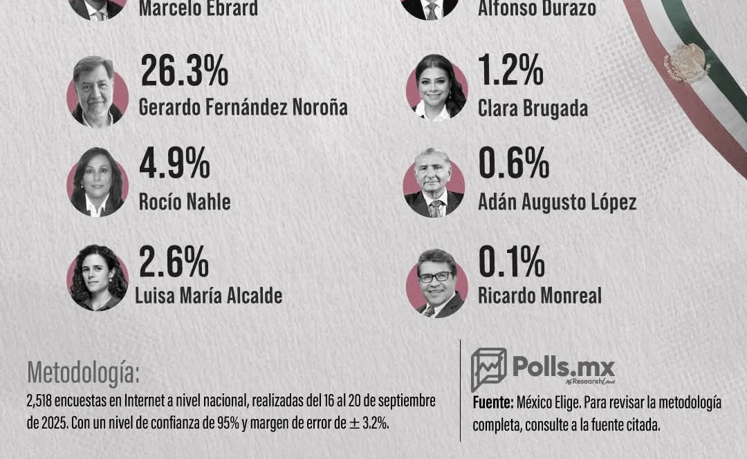El estudio destaca que el Secretario de Seguridad Ciudana Omar García Harfuch cuenta con un 30.3 por ciento de las preferencias, para candidato a la presidencia