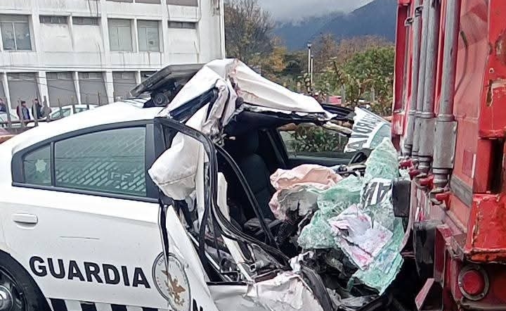 De acuerdo con los primeros reportes, el camión se encontraba detenido en un punto no permitido, mientras que la patrulla circulaba sobre el carril cuando ocurrió el impacto