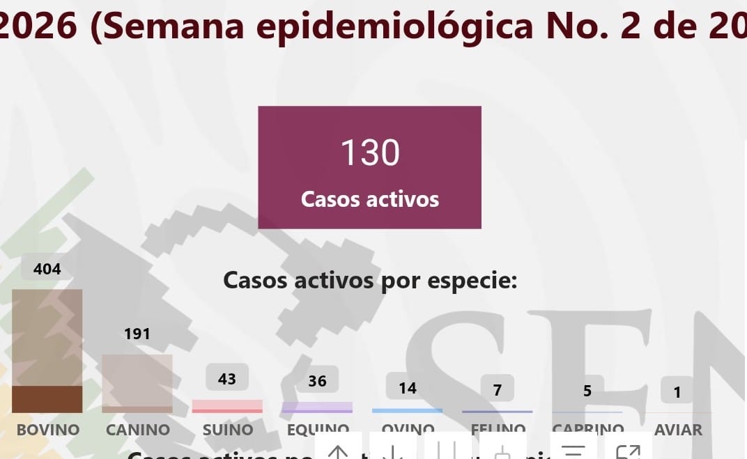 La información corresponde al boletín epidemiológico de la primera quincena de enero de 2026, elaborado con datos oficiales de la Secretaría de Agricultura