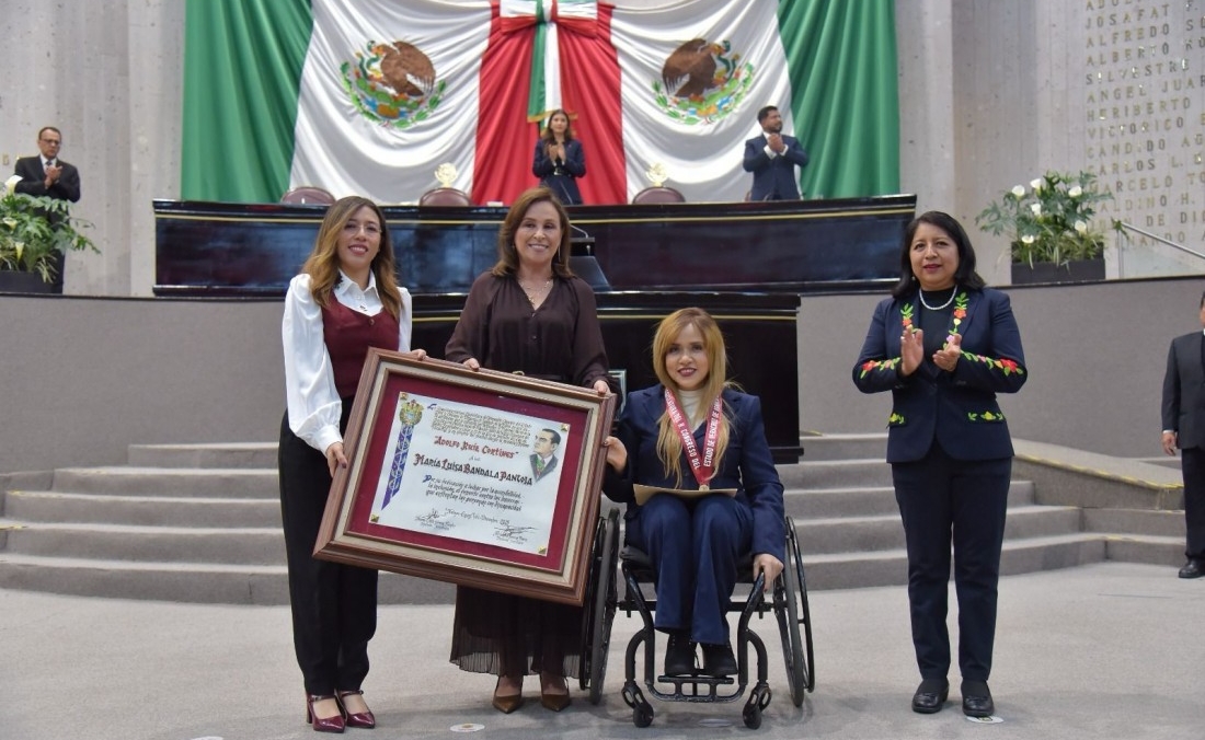 En Sesión Solemne, la atleta paralímpica veracruzana recibe la medalla y el diploma por su ardua labor, liderazgo incluyente y trayectoria ejemplar
