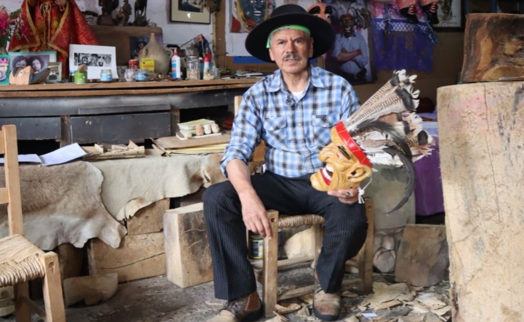 Con más de 60 años de dedicación a la talla de máscaras en madera, el maestro Mora Rivera ha preservado y transmitido los saberes que distinguen a dicho municipio