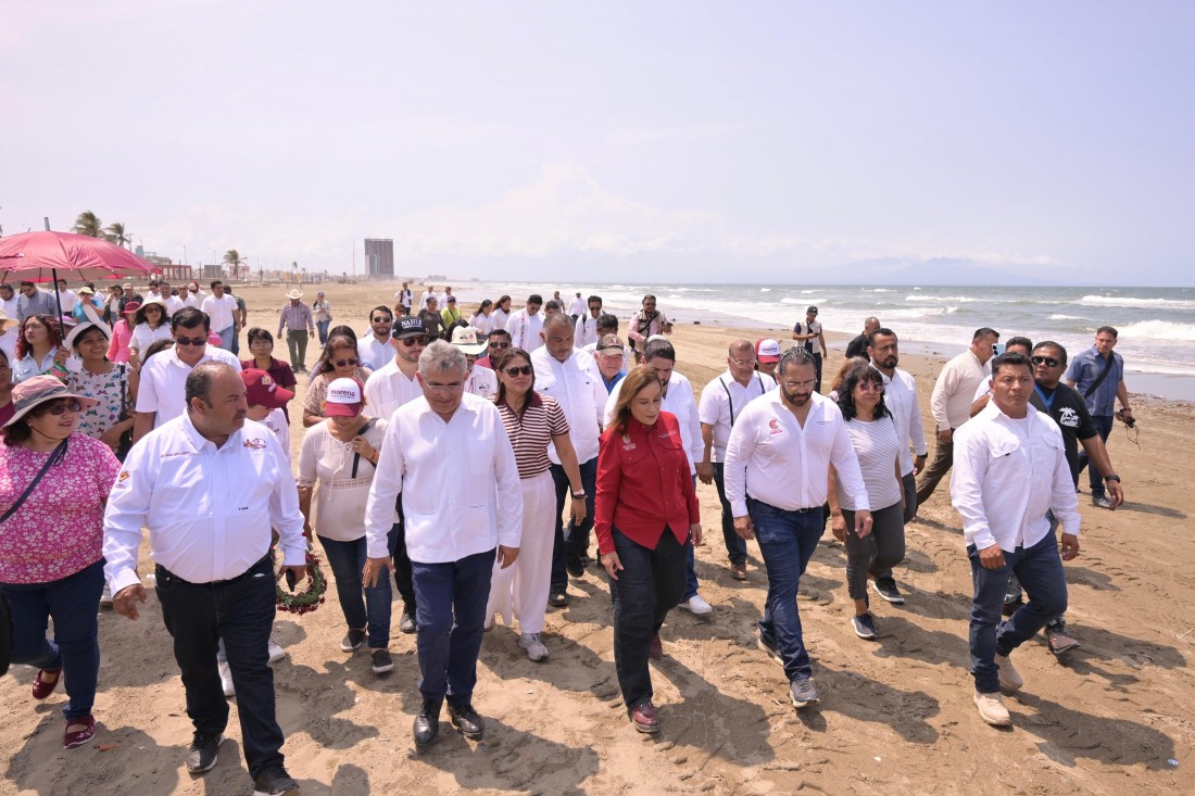 Supervisa Rocío Nahle García limpieza de la playa de Coatzacoalcos
